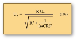 Wird dagegen die Frequenz immer kleiner und Xc gegenüber R groß, strebt der Nenner in (10a) über alle Grenzen und damit strebt Ua gegen 0. Dies ist ebenfalls dem Graphen zu entnehmen.